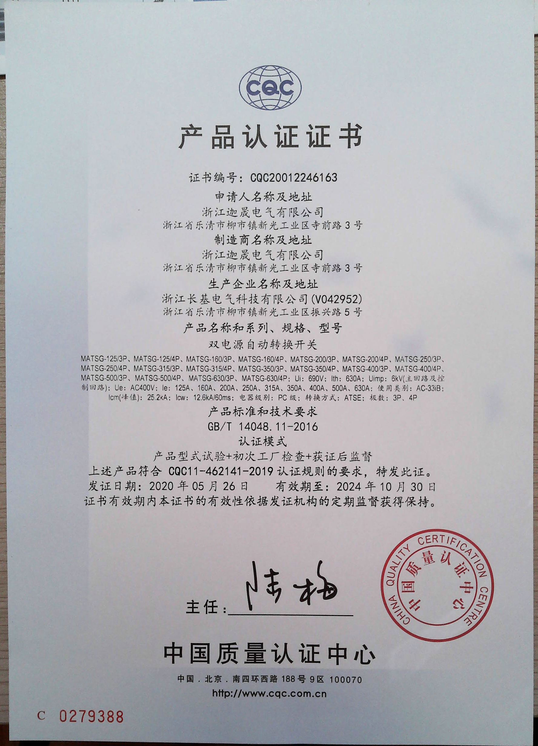 MATSW-63双电源CCC证书